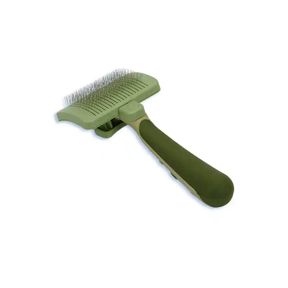 Featuring stainless steel pins that retract for easy clean up, our Safari Self-Cleaning Slicker Dog Brush gently removes mats, tangles and loose hair. With regular use, these high-quality, self-cleaning slicker brushes will also reduce shedding for a healthy coat and home. The non-slip grip makes grooming easy. Regular grooming of your dog's coat will keep it clean and healthy, and time spent grooming increases the bond between you and your dog.